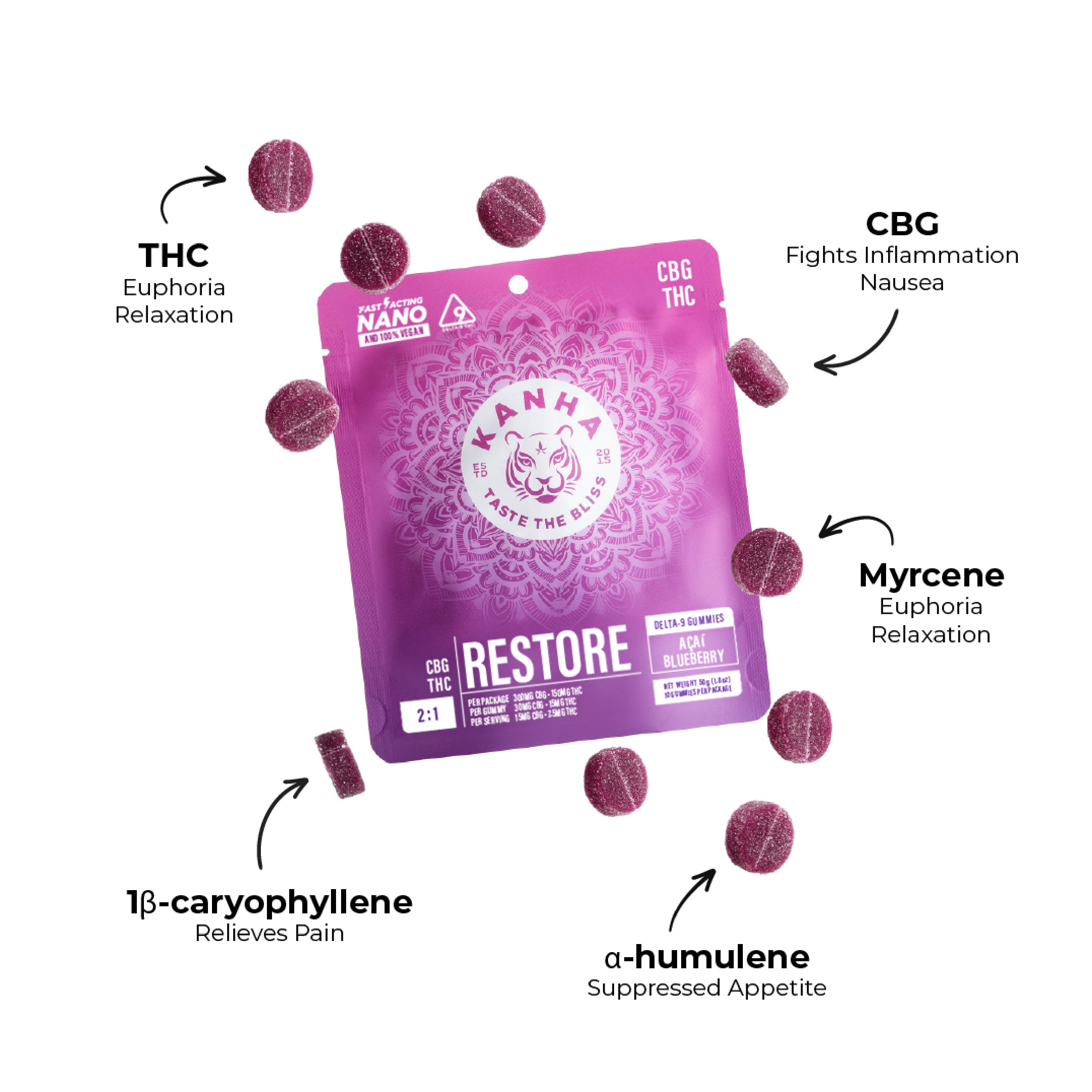 - Afternoon: FX Restore Acai Blueberry Gummies | 30mg CBG, 15 MG d9 THC